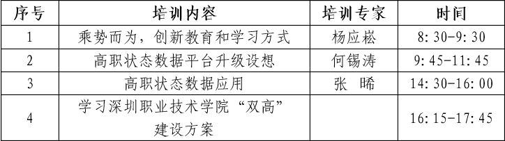為做好2020年高等職業院校人才培養工作狀態數據采集工作,根據《全國診改專委會2020年工作要點》安排,全國診改專委會決定,面向省級診改專委會和高等職業院校相關人員,開展高職院校人才培養工作狀態數據采集培訓班。經研究決定,結合我校“雙高”建設,對培訓內容進行了部分調整。現將培訓相關工作通知如下:
