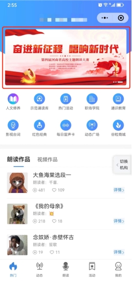 2.初賽組織:各參賽高校須通過組委會指定平臺開展初賽活動,初賽期間,師生可通過線上朗讀平臺在線報名、參與朗讀并上傳作品。