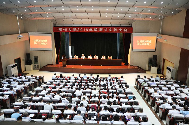 9月9日上午,在這金風送爽的美好季節,我們迎來了第34個教師節。我校在南校區報告廳隆重召開2018年教師節慶祝大會。校領導魏曰高、鄭廣華、符德學、申文波、張浦、霍曉麗出席會議,會議由副校長符德學主持。會上,副校長申文波同志宣讀《焦作大學關于表彰2017-2018學年優秀教師、優秀教育工作者、先進標兵和先進集體的決定》。校領導為焦作大學2017-2018學年先進集體網信辦、遠程教育學院、團委、信息工程學院4個單位,教學標兵藝術學院趙明明、網信辦林鄧偉、人文學院姜楠,科研標兵網信辦周冰、法政學院趙語慧、人文學院徐鵬,育人標兵法政學院趙霞、信息學院鄭笑晗、后勤管理處陳曉會,優秀教師代表和優秀教育工作者代表頒發了獎金和獲獎證書。受表彰的先進教學標兵代表藝術學院趙明明、科研標兵代表法政學院趙語慧、育人標兵代表信息學院鄭笑晗、先進集體代表網信辦林鄧偉分別發言。學校各部門、院系受表彰人員和副科級以上干部參加會議。