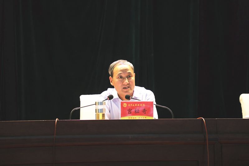 市委常委、宣傳部長宮松奇作題為《信黨愛黨跟黨走一生一世不回頭》的思想政治教育專題報告