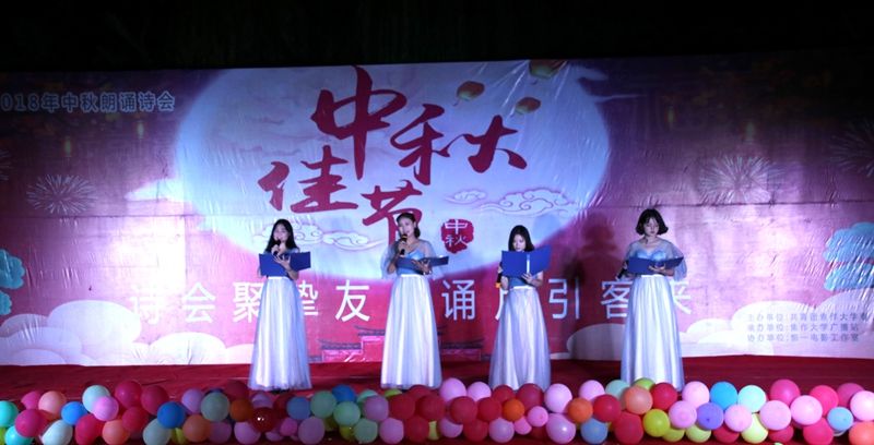 “海上生明月,天涯共此時”。9月24日晚19:00,由共青團焦作大學委員會主辦、廣播站承辦的2018年中秋朗誦詩會在南北校區同時舉行,本次詩會以“詩會聚摯友,誦月引客來”為主題。