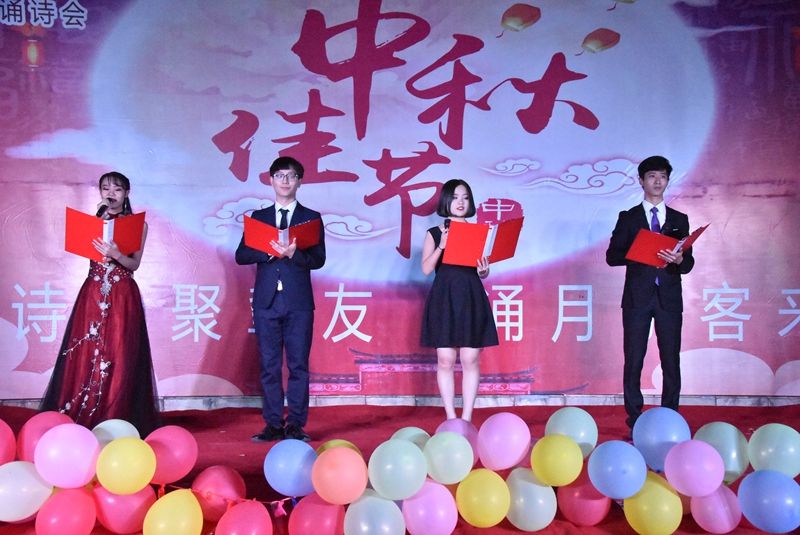 南北校區中秋詩會在《我們的節日》、《中秋的月》中拉開序幕,《中秋賦》、《春江花月夜》、《中秋的月亮》、《我們的節日》、《理想》、《金秋皓月》等一首首聲情并茂的配樂詩歌散文讓現場同學感受到了濃濃的爛漫詩情和中秋氛圍。歌曲《月光》、舞蹈《明月幾時有》、吉他彈唱《八月十五》、《但愿人長久》,同學們用歡快的歌聲、熱情的舞蹈迎接中秋佳節的到來。