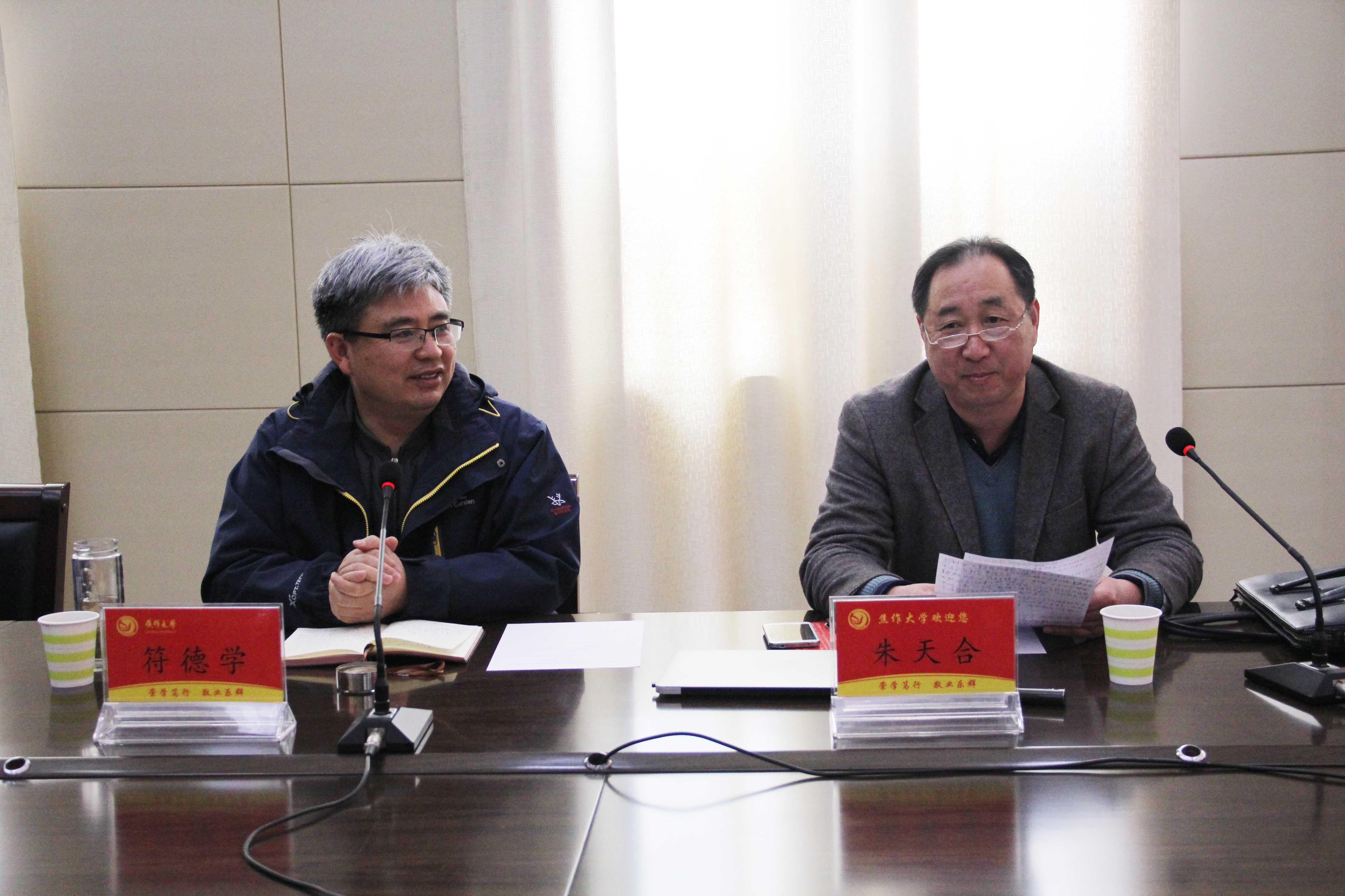 焦作大學副校長符德學和中聯公司總經理朱天合講話