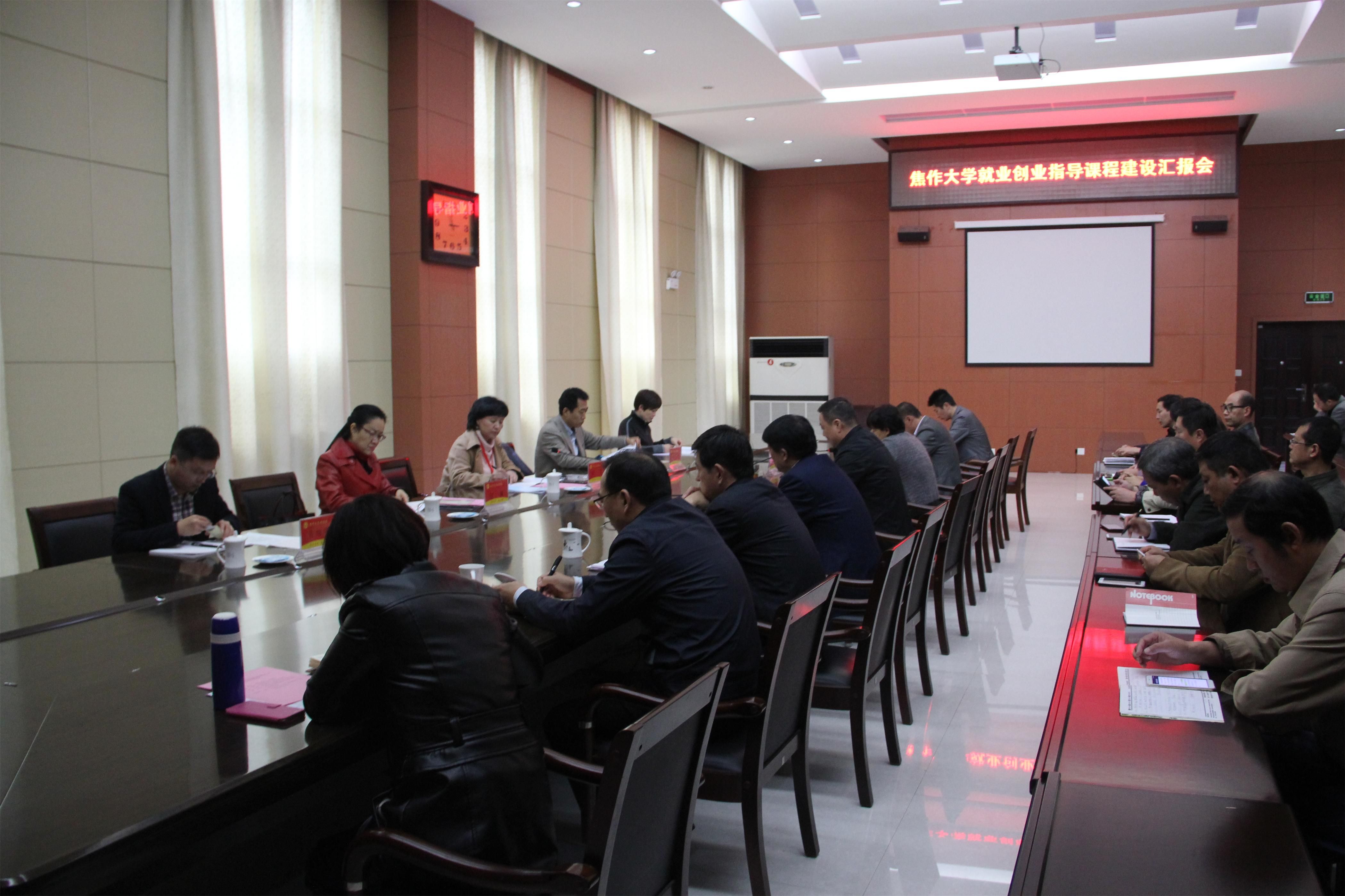 焦作大學大學生就業創業指導課程建設工作匯報會在行政樓二樓會議室舉行。校長鄭廣華、黨委副書記、副校長楊家卿、副校長霍曉麗及招生就業處、教務處、財務處、科研處、各學院負責人參加匯報會,會議由黨委副書記、副校長楊家卿主持。