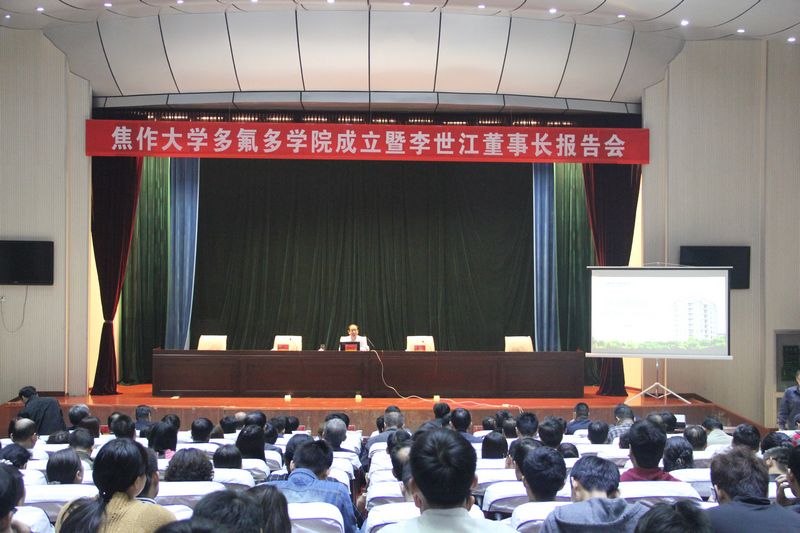 多氟多化工股份有限公司董事長李世江在致辭中表示,多氟多的快速發展離不開人才的支撐,為進一步加強公司人才隊伍建設,不斷優化人才隊伍結構、大力提高員工素質,滿足公司轉型升級需要,經過溝通協商,決定在優勢互補的基礎上實施“校企合作”戰略,成立“焦作大學多氟多學院”。主要在雙師隊伍組建與培養、實驗實訓條件建設、招生與就業、技能鑒定、信息化建設等方面進行深度合作。 “焦作大學多氟多學院”的揭牌,標志著雙方的合作邁出了實質性的一步。焦作大學培養的學生技術技能、學習態度、工作責任都是很優秀的。多氟多有許多焦作大學的優秀畢業生已走上領導崗位。大力推進校企合作戰略,也將進一步促進多氟多公司產業轉型升級、加快人力資源結構的調整。也希望,焦作大學師生能夠積極利用“焦作大學多氟多學院”這個平臺鍛煉自己、提升自己;也希望更多的品學兼優的畢業生加入到多氟多公司。