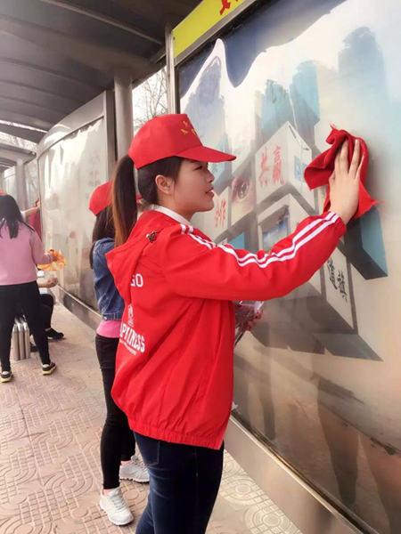 我校分管的衛(wèi)生區(qū)域是人民路焦作大學(xué)至丹尼斯,山陽路南水北調(diào)橋至人民路。在各學(xué)院負(fù)責(zé)老師的帶領(lǐng)下,志愿者們到達(dá)指定衛(wèi)生區(qū)域后迅速開始行動(dòng)。清掃人行道及隔離帶內(nèi)的零星碎屑,鏟除道路兩側(cè)的生活垃圾,清除路面和墻上等處的小廣告,擦洗路邊的隔離護(hù)欄和公交站牌。通過志愿者的努力,路面街道煥然一新。