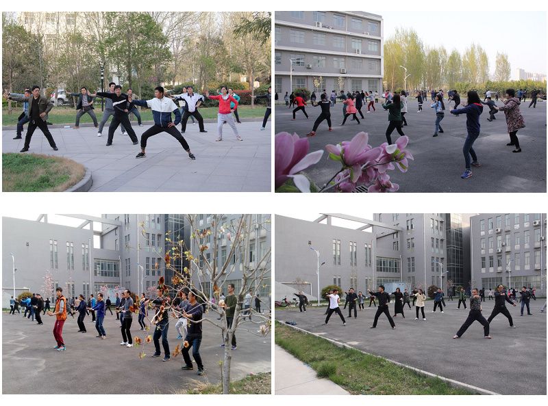為加強(qiáng)全體教職工體育鍛煉,凸顯我校太極拳文化特色,根據(jù)校黨委的要求,在全校范圍內(nèi)積極開(kāi)展學(xué)練太極拳活動(dòng)。學(xué)校各分工會(huì)、各學(xué)院自行組織師生,每天下午課外活動(dòng)時(shí)間積極學(xué)練太極拳。緊張的工作和學(xué)習(xí)之余,師生們來(lái)到操場(chǎng)、廣場(chǎng),在太極武術(shù)學(xué)院太極拳專(zhuān)業(yè)的老師或?qū)W生的帶領(lǐng)下,打起太極拳,一招一式,練得非常認(rèn)真。