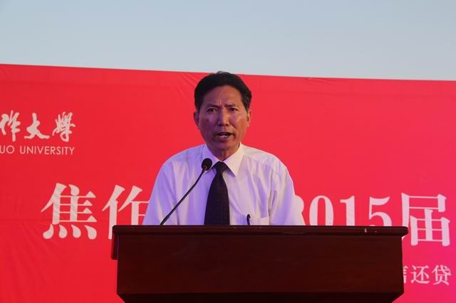 鄭廣華代表學校向2015屆全體畢業生致以最熱烈的祝賀和最美好的祝福!向所有為學生的成長、成才默默奉獻的老師們、親友們,致以最崇高的敬意和最衷心的感謝!并對全體畢業生提出了殷切希望:一要心懷感恩、勇于擔當。懷著一顆感恩的心,為親人、為母校、為國家作出更大的貢獻;二要誠實做人、踏實做事。擁有開闊的心胸、堅強的意志,堅持把做人、做事和做學問結合起來;三要構筑夢想、實現價值。樹立終身學習的理念,與時俱進,實現自己的人生價值。