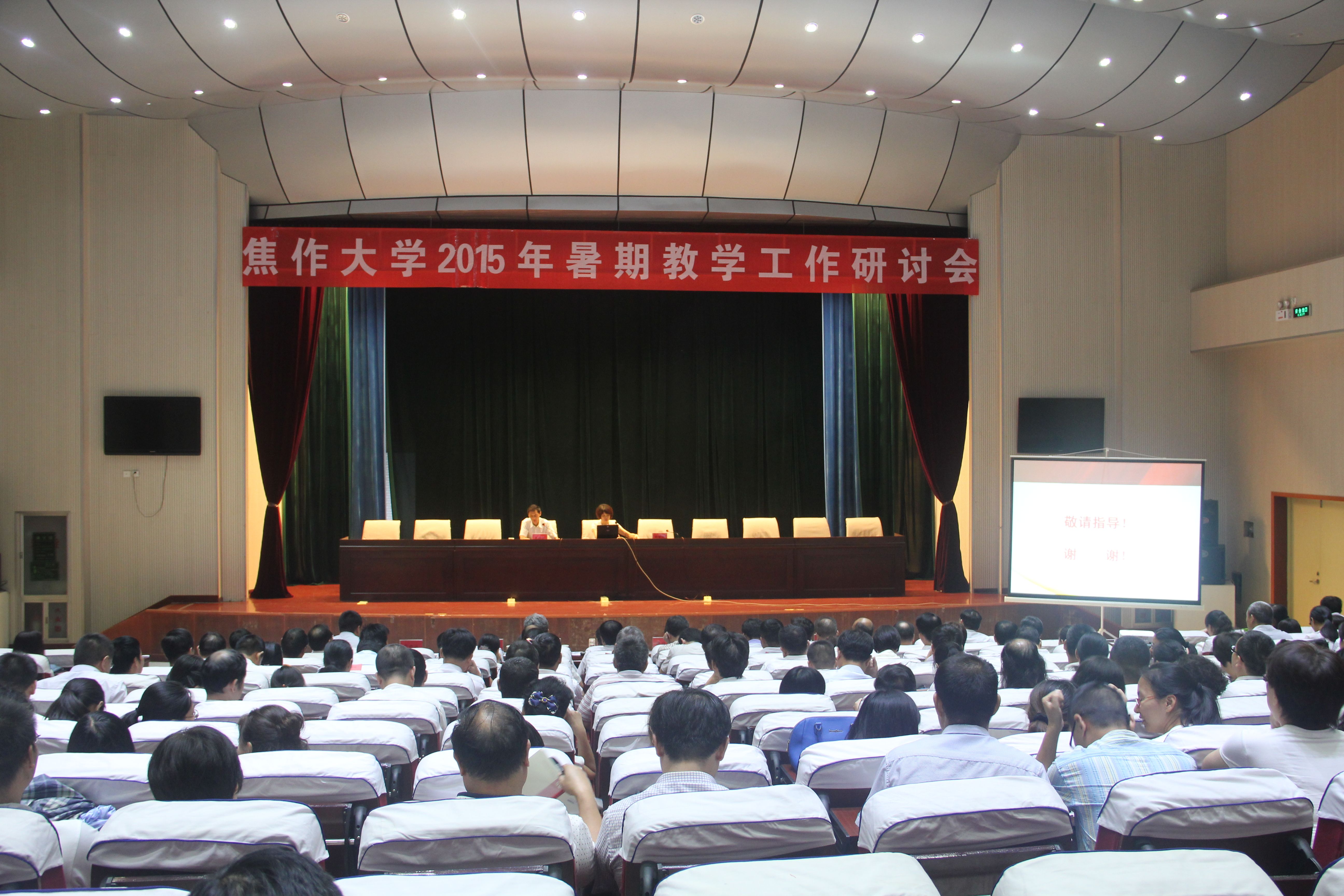 8月24日-25日,焦作大學召開為期兩天的2015年暑期教學工作研討會。校領導魏曰高、鄭廣華、焦金雷、馬韻新、符德學、楊中漢、申文波、張浦出席專家報告會。校長鄭廣華全程參與研討會并作總結講話,副校長馬韻新、教務處處長李向東分階段主持研討會。各學院院長、主管教學工作副院長、相關職能部門負責人及教務處全體人員參加了研討會。