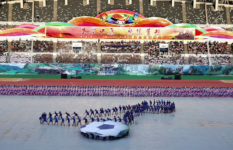 其中,1260名學生參加了《尋夢·武韻中原》、《筑夢·激情中原》《追夢·活力中原》、《逐夢中原》四個篇章的表演。300余名志愿者分布在體育場主席臺、入口、廣場、看臺,協助工作人員從事引領、檢票、咨詢、安保等志愿服務工作。開幕式結束后,志愿者們又拖著疲憊的身軀到體育中心將鋪草墊拆裝打包,直到8:40所有工作才全部結束。
