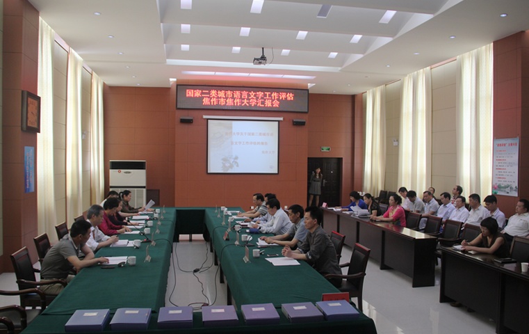 5月21日下午,國家二類城市語言文字工作評(píng)估專家組組長(zhǎng)、開封大學(xué)文學(xué)院趙瑾教授一行在焦作市教育局相關(guān)人員的陪同下,對(duì)我校語言文字工作的開展情況進(jìn)行了實(shí)地考察。焦作大學(xué)黨委書記郭維杰,校長(zhǎng)林效廷,副校長(zhǎng)、校語委主任馬韻新,辦公室主任吳玉倫,教務(wù)處處長(zhǎng)、校語委副主任李向東,人文學(xué)院院長(zhǎng)、校語委副主任熊志潮等陪同檢查并參加了匯報(bào)會(huì)。