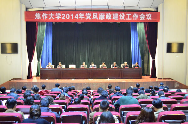 3月21日下午,焦作大學2014年黨風廉政建設工作會議在南校區報告廳召開。校領導郭維杰、林效廷、焦金雷、楊家卿、符德學、楊中漢、申文波、張浦出席會議。會議由黨委副書記、副校長楊家卿主持。全校副科級以上領導干部參加會議。