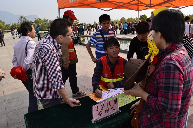 此次志愿服務時間長、人數多,從9月30日——10月5日,期間又逢中秋節。經過校團委前期宣傳發動,此次活動共招募320名優秀的志愿者。活動期間,志愿者們每天早上4:50集合,奔赴云臺山各個服務地點,用當代大學生的熱情與激情,開展了景區咨詢服務、車輛疏導、檢票驗票、衛生保潔等一系列的志愿服務活動。