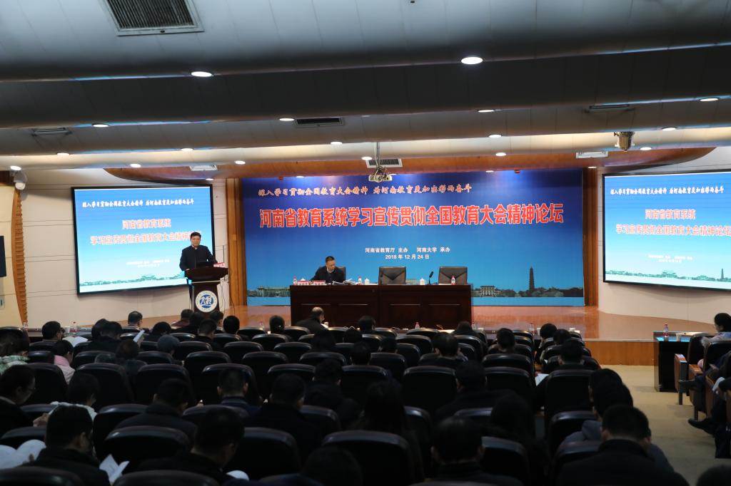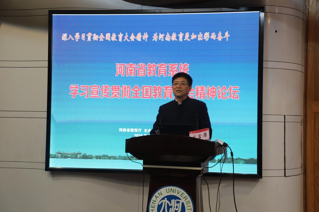 此次論壇旨在為深入學習貫徹全國教育大會精神,凝聚廣大教育工作者思想智慧,為全國教育大會精神在河南落地生根提供理論支持,營造學習貫徹全國教育大會精神的輿論氛圍。河南大學黨委委員、副校長劉先省致辭,河南省委高校工委專職委員高治軍發表重要講話。大會由河南省教育廳社科處王亞洲處長主持。
