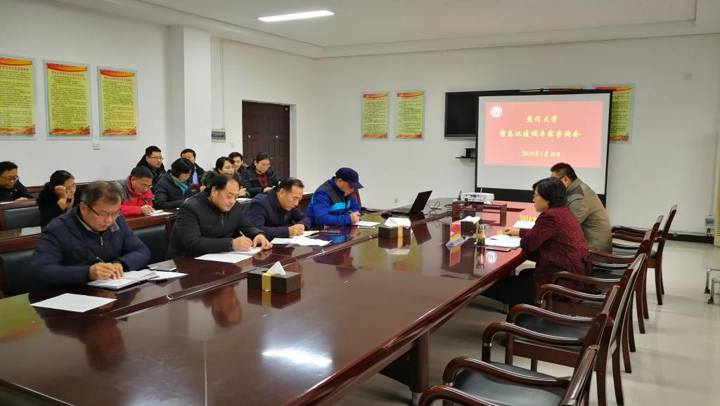 1月10日下午,我校2019年信息化建設專家咨詢會議在南校區行政樓3116會議室召開。副校長霍曉麗出席會議并致辭,會議由網信辦負責人林鄧偉主持。