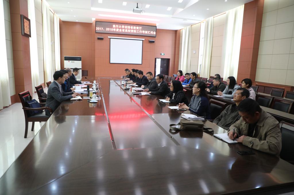 考核匯報會8:30在行政樓201會議室舉行。校長鄭廣華、副校長吳玉倫、副校長秦海金、學生處、財務處及各學院負責同志參加了匯報會,會議由副校長秦海金主持。會上,校長鄭廣華致歡迎詞,簡要介紹了我校發展概況和學生資助工作情況。考核組組長孟曉紅傳達了省教育廳此次考核的具體要求,副校長吳玉倫就我校2017—2018年度學生資助工作開展情況做了詳細匯報。
