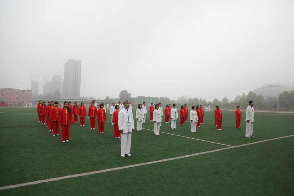 比賽場上,老師們個個揮灑自如,將太極拳含蓄內斂、連綿不斷、以柔克剛、急緩相間、行云流水的拳術風格淋漓盡致地展現在大家眼前,怡情怡性,悠遠綿長的太極拳音樂加上天空中零星的毛毛細雨,更顯意境深遠,韻味十足。從出場到展演,再到退場,展現在我們眼前的都是那般嫻熟。我校全體教職工經過兩個多月的共同努力,熟練掌握了太極拳的動作要領。為了這次表演賽我校全體教職工卯足了勁,抓緊每一分每一秒的練習時間,珍惜每一次的集體練習機會。在練習過程中能夠發揚互幫互助的精神,此次比賽豐富了教職工的精神文化生活,充分展現了中國文化的博大精深、源遠流長,也傳承了民族文化與精神,更增進了教職工之間的情誼。