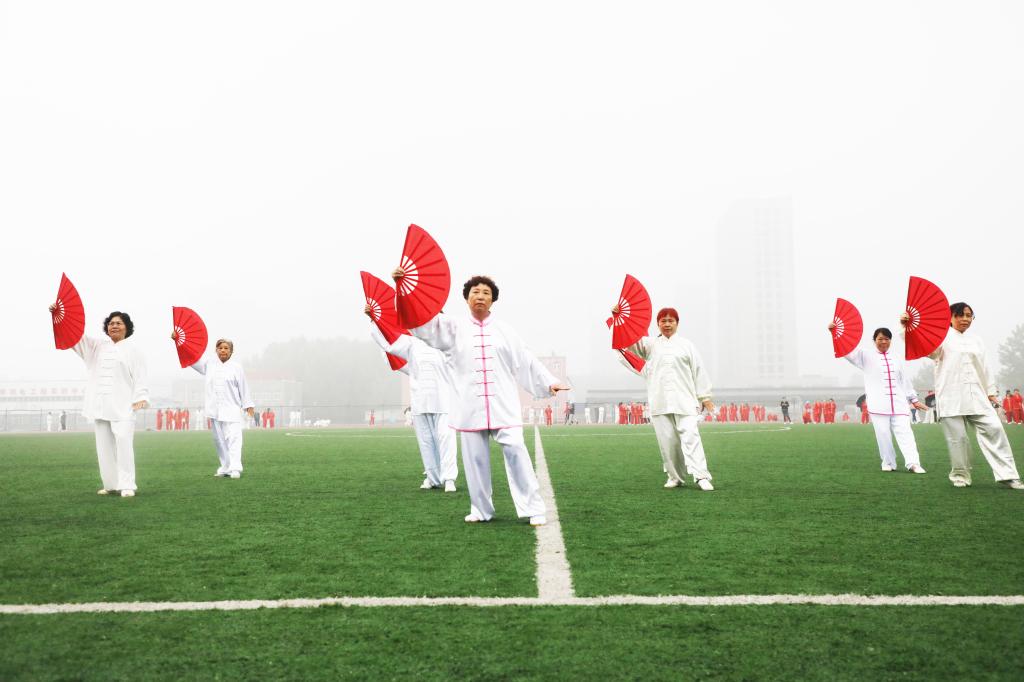 離退休黨支部為廣大師生送上了精彩的太極扇表演。(校工會供稿)