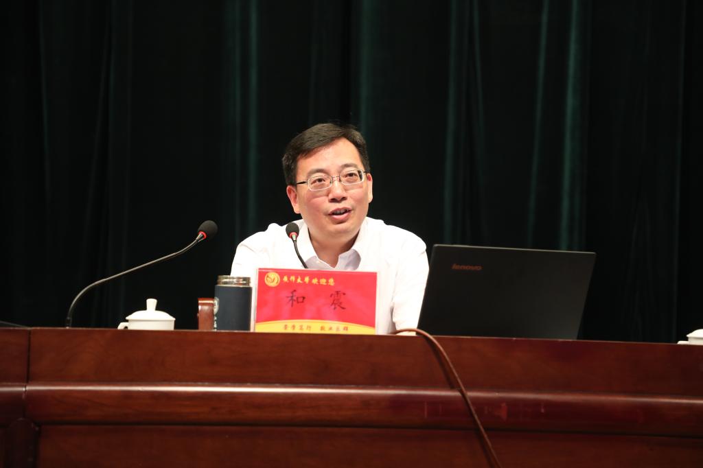 報告會邀請了北京師范大學職業教育研究所所長和震教授。和教授以“職業教育產教融合制度創新”進為題行了主題講座。市教育局黨組書記、局長蔣永立,校長鄭廣華出席報告會,報告會由副校長秦海金主持。