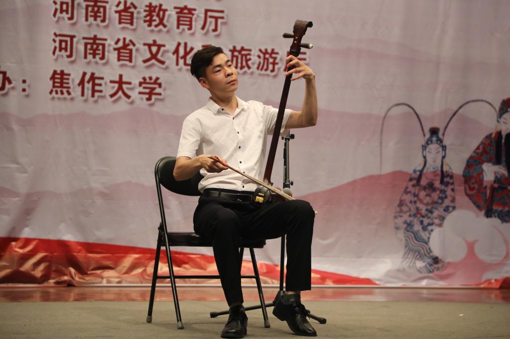 為弘揚(yáng)社會(huì)主義核心價(jià)值觀,培養(yǎng)青年學(xué)生對(duì)優(yōu)秀傳統(tǒng)文化的興趣,增強(qiáng)學(xué)生戲曲藝術(shù)素養(yǎng)和審美素養(yǎng)。根據(jù)《河南省教育廳 河南省文化和旅游廳聯(lián)合下發(fā)關(guān)于做好2019年“舞臺(tái)藝術(shù)送基層”活動(dòng)“戲曲進(jìn)校園”高校組演出工作的通知》(教體衛(wèi)藝〔2019〕210號(hào))文件精神, 6月1日,河南省2019年“戲曲進(jìn)校園”焦作大學(xué)專場(chǎng)演出活動(dòng)在南校區(qū)報(bào)告廳舉行。河南省曲劇藝術(shù)保護(hù)傳承中心的表演藝術(shù)家們?yōu)槲倚熒鷥A情奉獻(xiàn)了一場(chǎng)戲曲文化盛宴。我校300余名師生、退休教職工及戲曲愛好者共同觀看了演出。