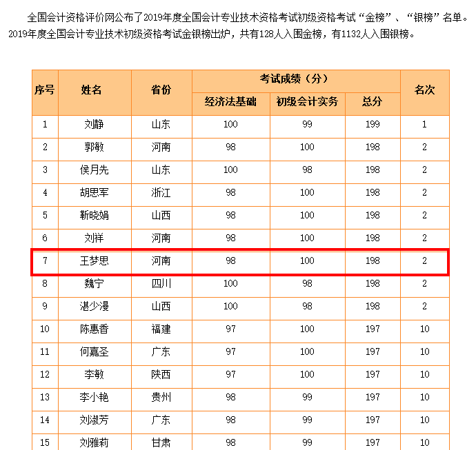 在2019年5月全國會計專業(yè)技術初級資格考試中,焦作大學會計學院2016級會計專業(yè)1班學生王夢思以《經(jīng)濟法基礎》98分、《初級會計實務》100分的成績,榮登2019年度全國會計專業(yè)技術初級資格考試“金榜”,位列全國第二名,已加入優(yōu)秀考生跟蹤評價計劃。(會計學院供稿)