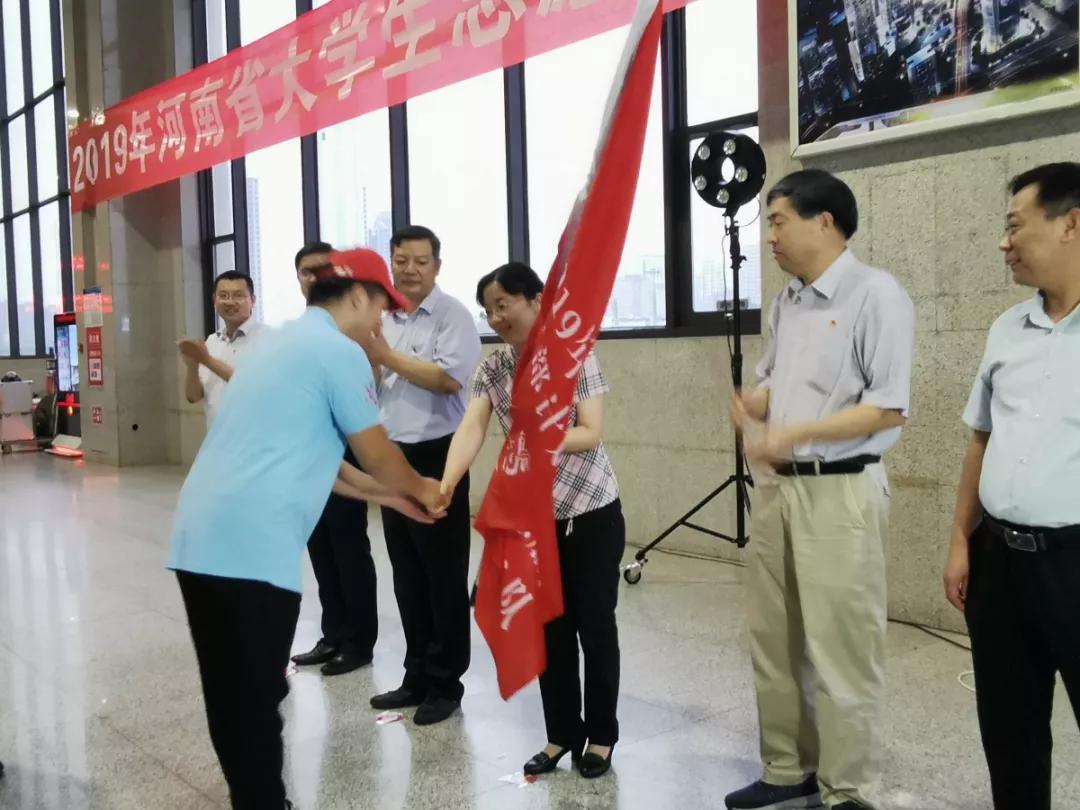 7月22日晚上19:00,2019年河南省大學生志愿服務西部計劃赴疆志愿者出征儀式在鄭州火車站舉行,共青團河南省委副書記、省大學生志愿服務計劃項目辦公室主任李麗和省財政廳、教育廳、人社廳、鄭州鐵路局等相關領導出席活動,來自全省各高校項目辦代表和志愿者近600余人參加了出征儀式。校團委宣傳部部長栗巖到鄭州火車站為我校西部計劃赴疆志愿者送行。