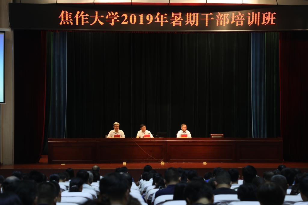 為進一步學習貫徹習近平新時代中國特色社會主義思想和黨的十九大精神,貫徹落實學校第二次黨代會精神,使廣大干部不斷增強“四個意識”,堅定“四個自信”,堅決做到“兩個維護”,提升思想政治素質和管理能力,推動學校各項事業發展。8月26日至27日,2019年焦作大學暑期干部培訓班在南校區報告廳舉行。校領導魏曰高、鄭廣華、符德學、霍曉麗、劉際平、吳玉倫、秦海金出席培訓會,校黨委委員林五星、李文靜、張繼文參加培訓會。會議由黨委副書記、工會主席符德學主持。