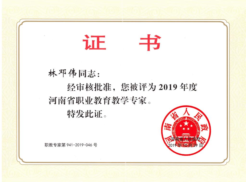 河南省職業教育教學專家是河南省人民政府為有突出貢獻的職業教育工作者設立的一種專家名稱,旨在大力發展職業教育,鼓勵長期在職業教育工作中做出突出貢獻的教育工作者,推動全省職業教育師資隊伍建設,每兩年評選一次,每次評選80名左右。本次評選經單位推薦、資格審查、網絡評審、現場答辯、專家評議、結果公示等環節共評選出2019年河南省職業教育教學專家79人,我校李鴻征和林鄧偉教授成功入選。