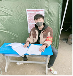 邢帥,焦作大學經濟管理學院18級市場營銷3班班長,主動參加疫情防護工作,在防疫點進行執勤,并協助防疫工作人員給村里公共場合進行消毒,登記往來車輛與人員體溫。