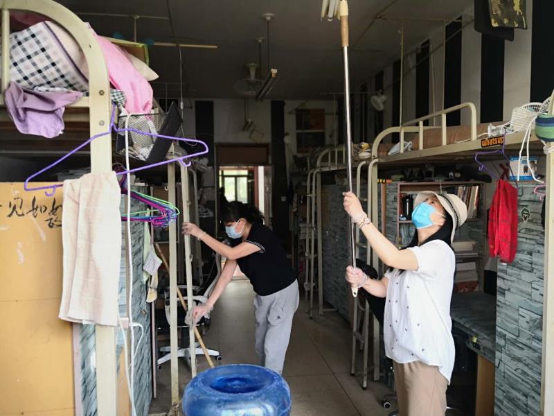 5月18日-20日,機(jī)關(guān)黨總支140余名教職工對(duì)南校區(qū)3號(hào)男生宿舍樓126間宿舍進(jìn)行了認(rèn)真打掃。機(jī)關(guān)各黨支部書(shū)記、部門(mén)領(lǐng)導(dǎo)主動(dòng)帶頭,不嫌臟、不怕累。大家分批分層清除宿舍內(nèi)墻角蜘蛛網(wǎng)、掃地拖地、整理桌面床鋪、擦拭窗戶(hù)玻璃、清理衛(wèi)生死角等。窗戶(hù)臟了,卸下來(lái)清理干凈再裝上,地面拖了一遍又一遍,宿舍很快變得整齊有序,窗明幾凈。