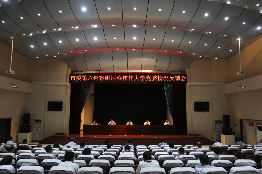 8月17日上午,市委第六巡察組巡察焦作大學黨委情況反饋會在我校學術報告廳召開。市委組織部常務副部長張現儉、市委第六巡察組組長劉玉良、市委巡察辦副主任張東升、市委第六巡察組副組長王冬云,以及市紀委監委監督檢查室和市委巡察辦相關科室的負責同志出席會議。學校領導班子成員、各部門、各院部主要負責人、紀檢監察、組織人事等部門的相關工作人員參加會議。會議由黨委書記魏曰高主持。