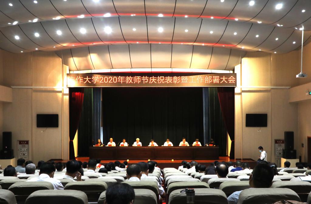 9月10日下午,為慶祝第36個教師節,學校在南校區報告廳隆重召開2020年教師節慶祝表彰暨工作部署大會。全體校領導、學校正科級(含)以上干部、先進集體,教學、科研、育人標兵,優秀教師、優秀教育工作者代表參加會議。會議由黨委副書記、工會主席符德學主持。