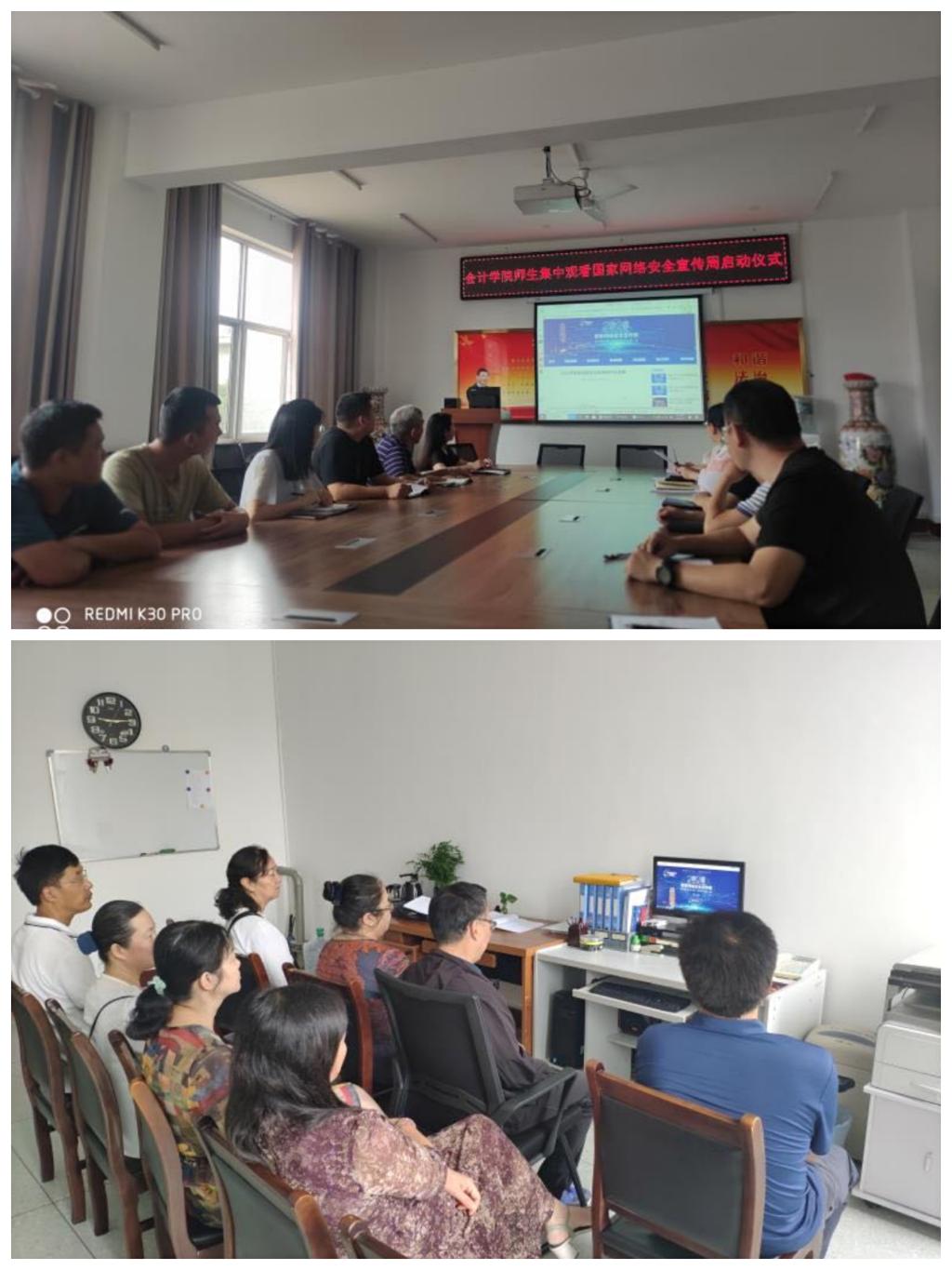此次教育活動中,學校編寫并發放網絡安全宣傳資料5300份;制作并擺放網絡安全宣傳版面12塊;室外電子屏滾動播放網絡安全宣傳標語數條;校廣播站每天播放網絡安全實用知識。9月14日上午9時,學校網信辦組織全校師生收看了國家網絡安全宣傳周啟動儀式直播。9月15日,網信辦邀請焦作市公安局網技支隊隊長武勝利來校進行網絡安全講座,并將學習資料傳送至學習平臺,供全校師生觀看學習。9月17日校團委邀請焦作市防詐中心主任郭煒來校做網絡防詐騙講座。各分工會也采取線上線下相結合的方式進行了網絡安全知識的學習。