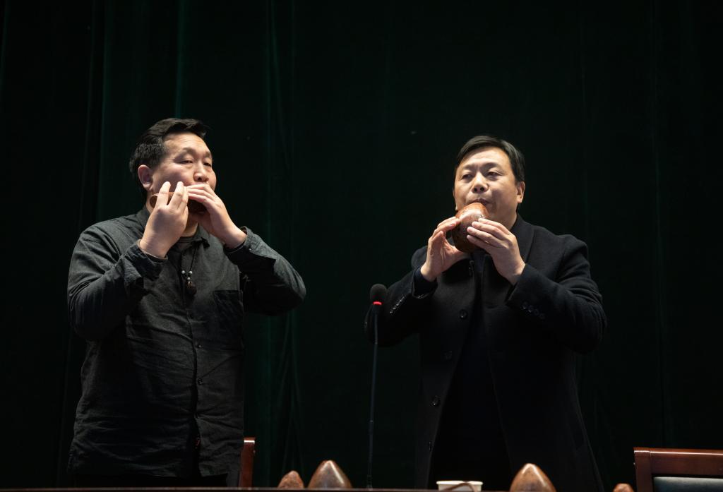 翟嵩峰用五個故事,從五個方面、不同角度解讀了深沉厚重的黃河文化。生動的報告讓現場師生受益匪淺。報告會現場,翟書記和焦作市非物質文化遺產黃河泥塤代表性傳承人王建一起用黃河泥塤吹奏了《妝臺秋思》、《陽光三疊》、《知音》等樂曲,原始古樸的演奏贏得陣陣掌聲,令師生意猶未盡。