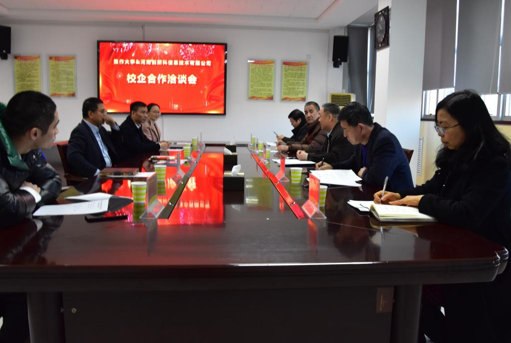 12月24日上午,河南創新科信息技術有限公司總經理韓冰一行5人來我校洽談校企合作事宜。校黨委副書記、校長鄭廣華,校黨委委員、副校長秦海金出席會議。