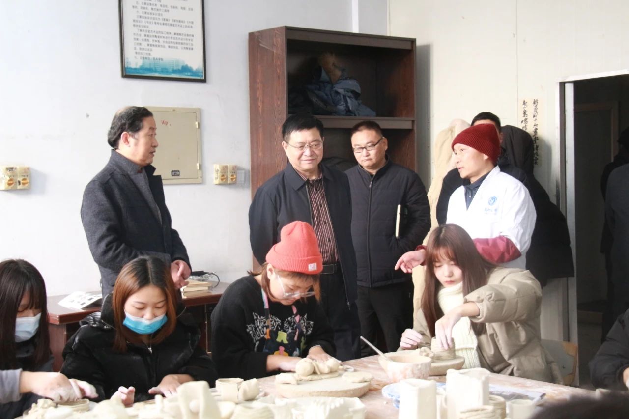 魏書記先后來到了藝術學院絞胎瓷生產性實訓基地、陶瓷展覽館、琴房小院、舞蹈排練廳、合唱排練演播廳、室內設計工作室、影視多媒體工作室、視覺傳播與制作教研室、數字媒體藝術設計教研室、環境藝術設計教研室、黨建走廊、黨建活動室等。所到之處,魏書記認真傾聽相關負責人匯報講解,詳細詢問工作開展情況、工作落實情況。