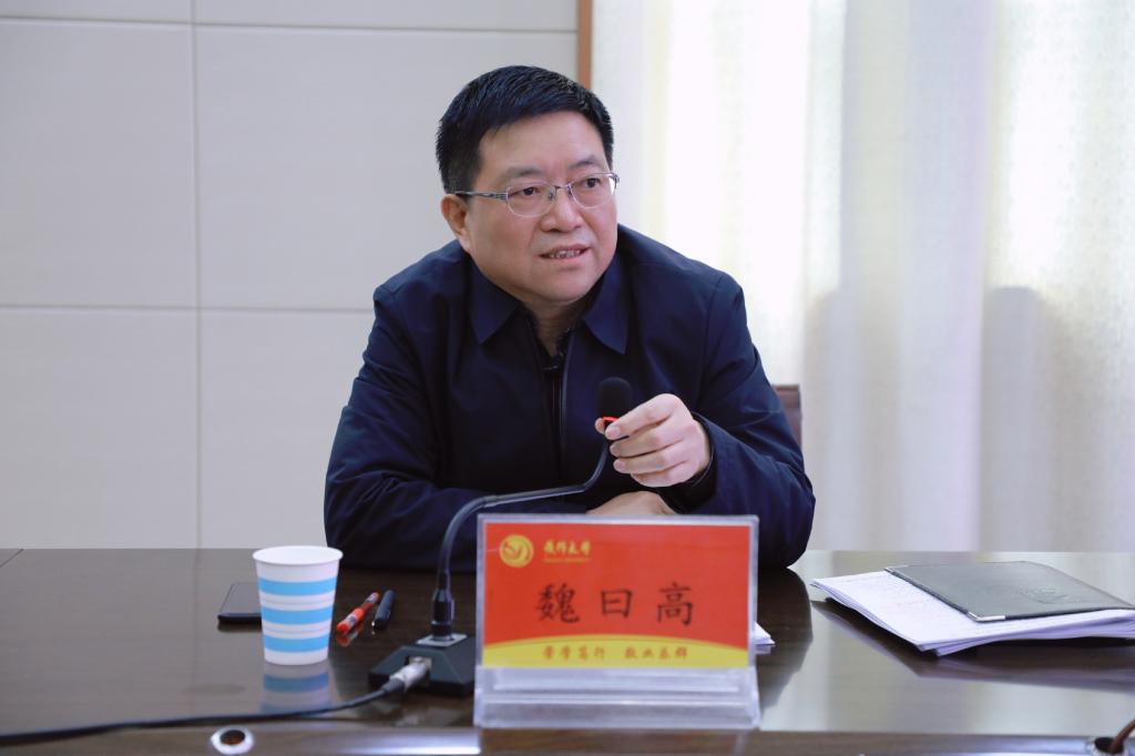 魏曰高對學校開展好黨史學習教育提出明確要求:一要提高政治站位,增強黨史學習教育的政治自覺。學習黨史,是牢記初心使命、推進中華民族偉大復興歷史偉業的必然要求,是堅定信仰信念、在新時代堅持和發展中國特色社會主義的必然要求,是推進黨的自我革命、永葆黨的生機活力的必然要求。開展黨史學習教育,就是要用心感悟黨的偉大,增強對黨的感情,增強“四個意識”,堅定“四個自信”,做到“兩個維護”,推進“五化”建設、“四校聯創”,扎實開展“雙高”工程,推進學校高質量發展。二要明確目標要求,把握黨史學習教育的重點任務。要深入學習貫徹習近平總書記重要講話精神,貫徹落實中央、省市委動員大會及實施意見精神,堅持學史明理,學史增信,學史崇德,學史力行,扎扎實實把黨史學習教育組織好、開展好,學黨史、悟思想、辦實事、開新局。三要緊扣學校實際,確保黨史學習教育取得實效。要把黨史學習教育與黨的思想政治建設結合起來、與學生思想政治教育結合起來、與“四個自信、四個熱愛”活動結合起來、與黨團活動結合起來、與為師生辦實事結合起來,在學黨史中明理悟道、增信鑄魂、崇德尚賢、力行擔當,從黨的百年偉大奮斗歷程中汲取推動學校進步的智慧和力量。四要壓實政治責任,強化對黨史學習教育的政治引領。校黨委書記親自抓、帶頭抓;各黨總支書記帶頭學、帶頭管;發揮黨支部的戰斗堡壘作用和黨員的先鋒模范作用,立足實際、明確責任,高標準高質量完成學習教育各項任務,確保黨員、干部不管處在哪個層次和崗位,都能全身心投入,做到學有所思、學有所悟、學有所得。