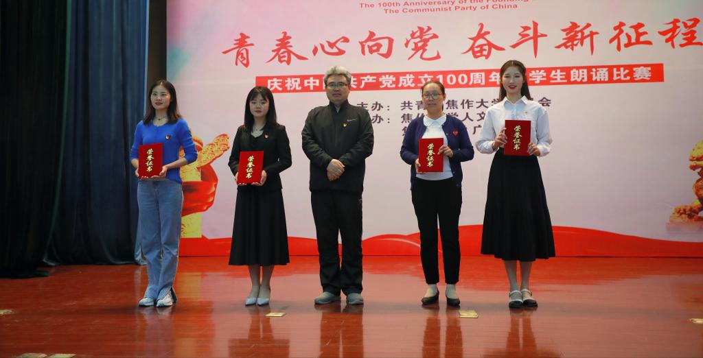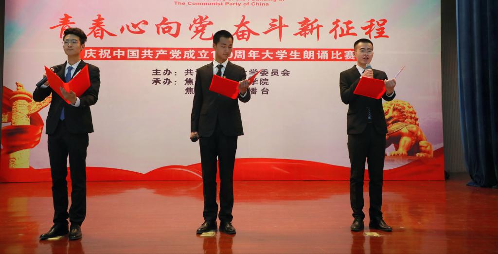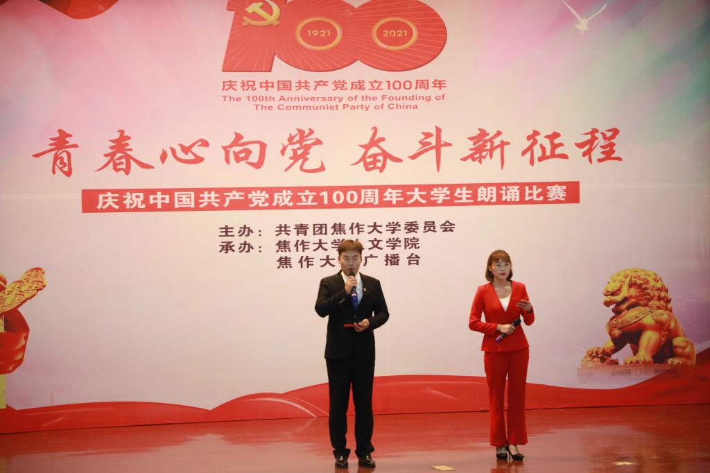 為深入推進黨史學(xué)習(xí)教育,慶祝建黨100周年,5月19日下午,由校團委主辦,人文學(xué)院、廣播臺承辦的慶祝建黨100周年大學(xué)生朗誦比賽決賽在學(xué)術(shù)報告廳舉行。校黨委副書記、工會主席符德學(xué),黨委委員、組織部長李文靜,黨委委員、宣傳統(tǒng)戰(zhàn)部部長張繼文,團委書記趙文平觀看了此次比賽。