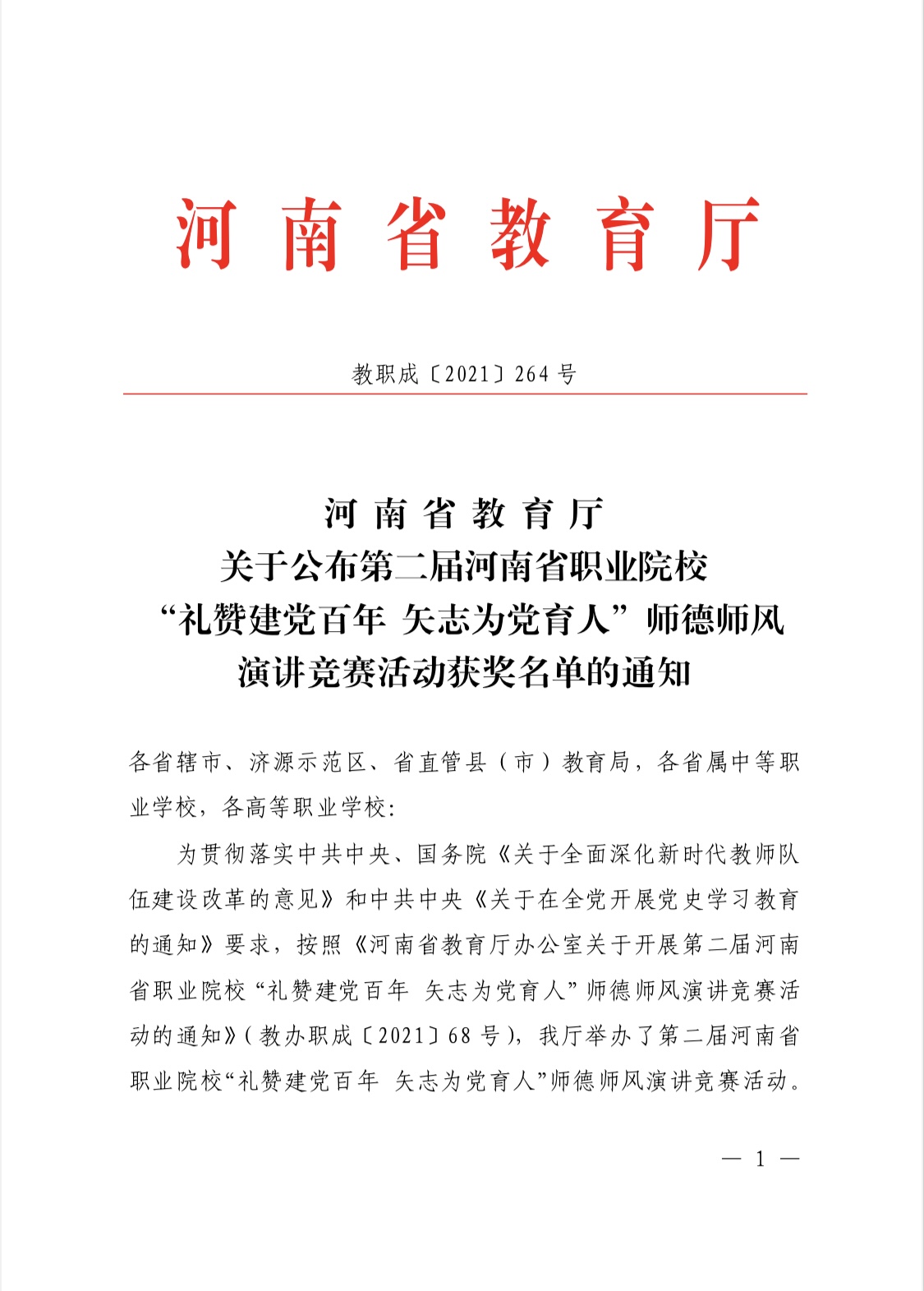此次競賽經各地、各學校選拔推薦,省教育廳組織專家評選,高職組共評選出一等獎 14 個,二等獎 23 個,三等獎 27 個;優秀組織獎 15 個。我校教師在比賽中獲得優異成績,既是學校教師優秀品質的展現,也是對學校師德師風建設成果的檢驗,將進一步促進學校師德師風建設工作再上新臺階。