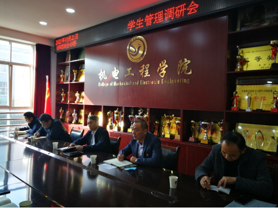 為深入貫徹落實“守規矩、懂業務、真落實”活動要求,10月21日上午,校黨委委員、副校長吳玉倫一行到機電工程學院調研指導學生管理工作,陪同調研的還有學生處、后勤基建處、保衛處、黨政辦公室等部門人員。會議由學院黨總支書記郭建洲主持。