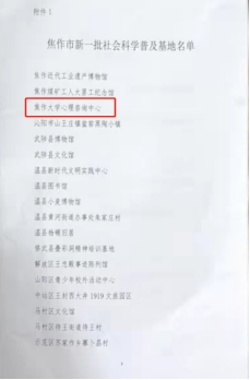 近日,焦作市社會科學界聯(lián)合會辦公室印發(fā)《關于命名焦作市社會科學普及基地的通知》(焦社科聯(lián)[2021]11號)。我校心理咨詢中心入選焦作市社會科學普及基地。