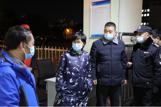 11月23日,校長霍曉麗在副校長吳玉倫的陪同下,帶領黨政辦公室、后勤基建處、保衛處、學生處等部門相關人員,深入南校區食堂、北門崗和宿舍樓,實地檢查了防疫物資儲備、人員在崗和工作預案準備情況。