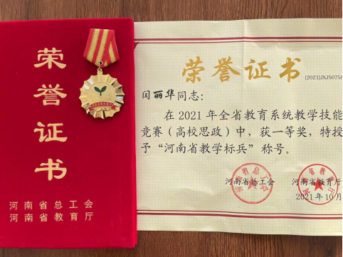 河南省總工會、河南省教育廳于2021年6月至10月在全省教育系統開展了高等院校思政、文科、理科、工科教學技能大賽。經過各級總工會、教學行政部門,高等院校工會、行政及有關單位的精心組織、嚴密實施,并由河南省教育系統教學技能競賽領導小組組織的評審委員會評比審定及現場決賽,我校閆麗華老師榮獲2021年全省教育系統教學技能競賽高校思政科一等獎、方輝老師榮獲高校經管科二等獎。