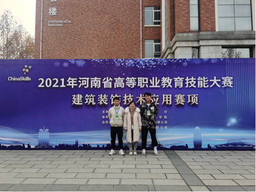 建筑裝飾技術應用賽項比賽于12月14日至12月15日在河南建筑職業技術學院舉行。大賽共有38所學校、65支隊伍、130位選手參賽。比賽共分為四個模塊,并首次增加指令深化設計模塊,綜合考核學生的建筑裝飾技術設計、算量、操作、應用能力。土木建筑工程學院建筑裝飾工程技術專業的付夢賓、未宇祥兩位同學在指導教師弓萍、申喆的帶領下參加此次大賽,經過不懈努力和激烈競賽,取得了全省排名第十的優異成績。