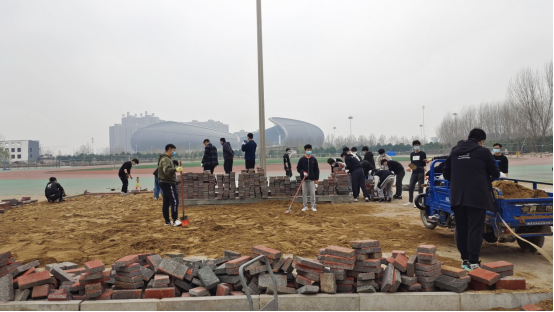 在輔導(dǎo)員老師的帶領(lǐng)下,大家發(fā)揚(yáng)“特別能戰(zhàn)斗”精神,無懼辛苦,協(xié)力配合,分組施工。拉沙組、鏟灰組、搬磚組、清理垃圾組各司其職,“后援”和“技師”各就其位。師生們以比賽的標(biāo)準(zhǔn),開展了學(xué)以致用的專業(yè)實(shí)踐,圓滿完成了任務(wù),恢復(fù)了暢通潔凈、方便出行的安全道路。