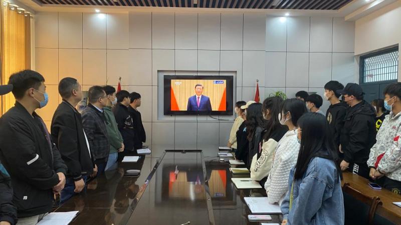 校黨委副書記、工會主席符德學,黨委委員、黨政辦公室主任林五星,黨委委員、組織部部長李文靜,學生處處長張永強,宣傳統戰部副部長朱天星,校團委全體在校人員和學生代表在行政樓104青年之家集中觀看慶祝大會。各學院黨政領導、團總支書記和師生代表集中觀看慶祝大會,無課學生在教室、宿舍觀看慶祝大會。