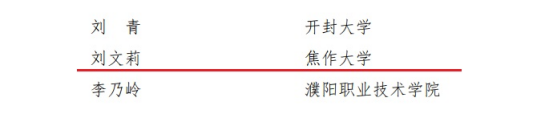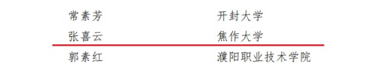 近日,全省高校思想政治工作獎(jiǎng)評(píng)審結(jié)果名單公布。我校4名教師獲得表彰。其中,劉文莉獲得“河南省高等學(xué)校思想政治工作先進(jìn)個(gè)人”稱號(hào);郭為民獲得“河南省高等學(xué)校優(yōu)秀輔導(dǎo)員”稱號(hào);張喜云獲得“河南省高等學(xué)校優(yōu)秀思想政治理論課教師”稱號(hào);周永平獲得“河南省高等學(xué)校優(yōu)秀心理健康教育工作者”稱號(hào)。