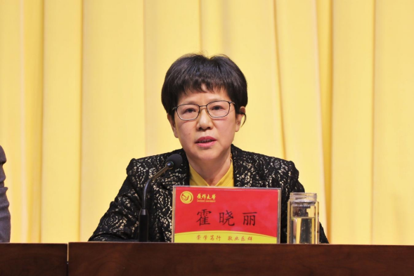 校長霍曉麗作了題為《團(tuán)結(jié)奮進(jìn) 勇于擔(dān)當(dāng) 開創(chuàng)學(xué)校高質(zhì)量發(fā)展新局面》的講話。她對我校2022年工作進(jìn)行了系統(tǒng)回顧,對2023年12項(xiàng)重點(diǎn)工作進(jìn)行了安排部署,并就做好2023年工作提出四點(diǎn)要求:一是講團(tuán)結(jié)。全校師生心往一處想、勁往一處使,同舟共濟(jì)、眾志成城。講團(tuán)結(jié)、顧大局、聚合力、謀發(fā)展。二是講支持。切實(shí)做到第一時(shí)間學(xué)習(xí)傳達(dá)、第一時(shí)間貫徹落實(shí)、第一時(shí)間反饋結(jié)果。三是講責(zé)任。全校上下要牢固樹立強(qiáng)烈的責(zé)任意識,盡心盡力地履行崗位職責(zé),心無旁騖地?zé)釔郾韭毠ぷ鳎瑘?jiān)決不回避問題、躲避困難,真正做到敢于擔(dān)當(dāng)責(zé)任、勇于面對矛盾、善于解決問題。四是講督導(dǎo)。要集中精力、集中人員、集中時(shí)間,嚴(yán)格按照“嚴(yán)、細(xì)、深、實(shí)”的原則,認(rèn)真扎實(shí)開展好升本評估督導(dǎo)工作,務(wù)求實(shí)效。