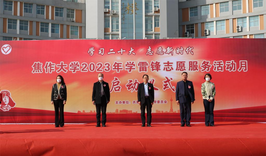 今年是毛澤東等老一輩革命家為雷鋒同志題詞60周年。為深入學習宣傳貫徹黨的二十大精神和習近平總書記對深入開展學雷鋒活動作出的重要指示精神,大力弘揚雷鋒精神和“奉獻、友愛、互助、進步”的志愿精神,3月3日,“學習二十大,志愿新時代——焦作大學2023年學雷鋒志愿服務活動月”啟動儀式在南校區圖書館廣場舉行。