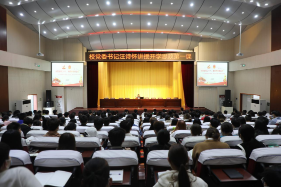3月8日下午,校黨委書記汪詩(shī)懷在南校區(qū)報(bào)告廳以《學(xué)思踐悟二十大 激揚(yáng)青春新征程》為題,為部分學(xué)生入黨積極分子和學(xué)生代表講授2023年春季學(xué)期開學(xué)思政第一課。